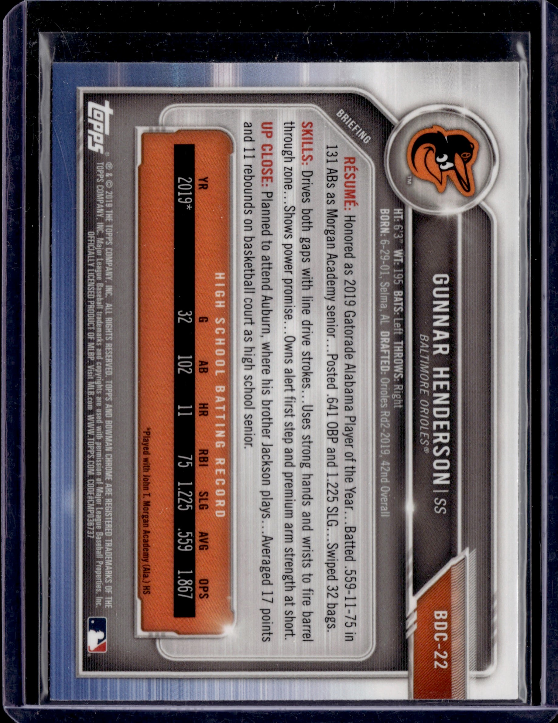 2019 Topps Bowman Draft Chrome Gunnar Henderson #BDC-22