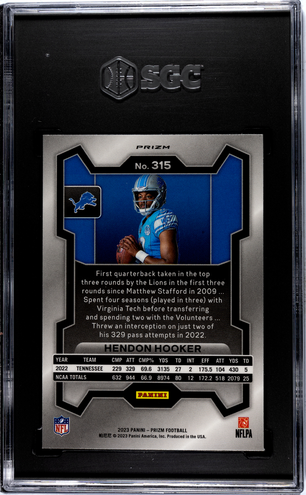 You are purchasing a 2023 Panini Prizm Hendon Hooker #315 Variation SGC 9. You will receive the exact item in the photographs. Orders are processed and shipped within 2 business days. Tracking information will be added to your order once available. We take pride in delivering exceptional service through both our fulfillment quality control and prompt communication. If you're not 100% satisfied with your order, please contact us directly as we’re confident we can resolve any issues. Positive 5 star reviews are always greatly appreciated. Thank you for choosing Graybo’s Sports Cards! Listed With Mascot.