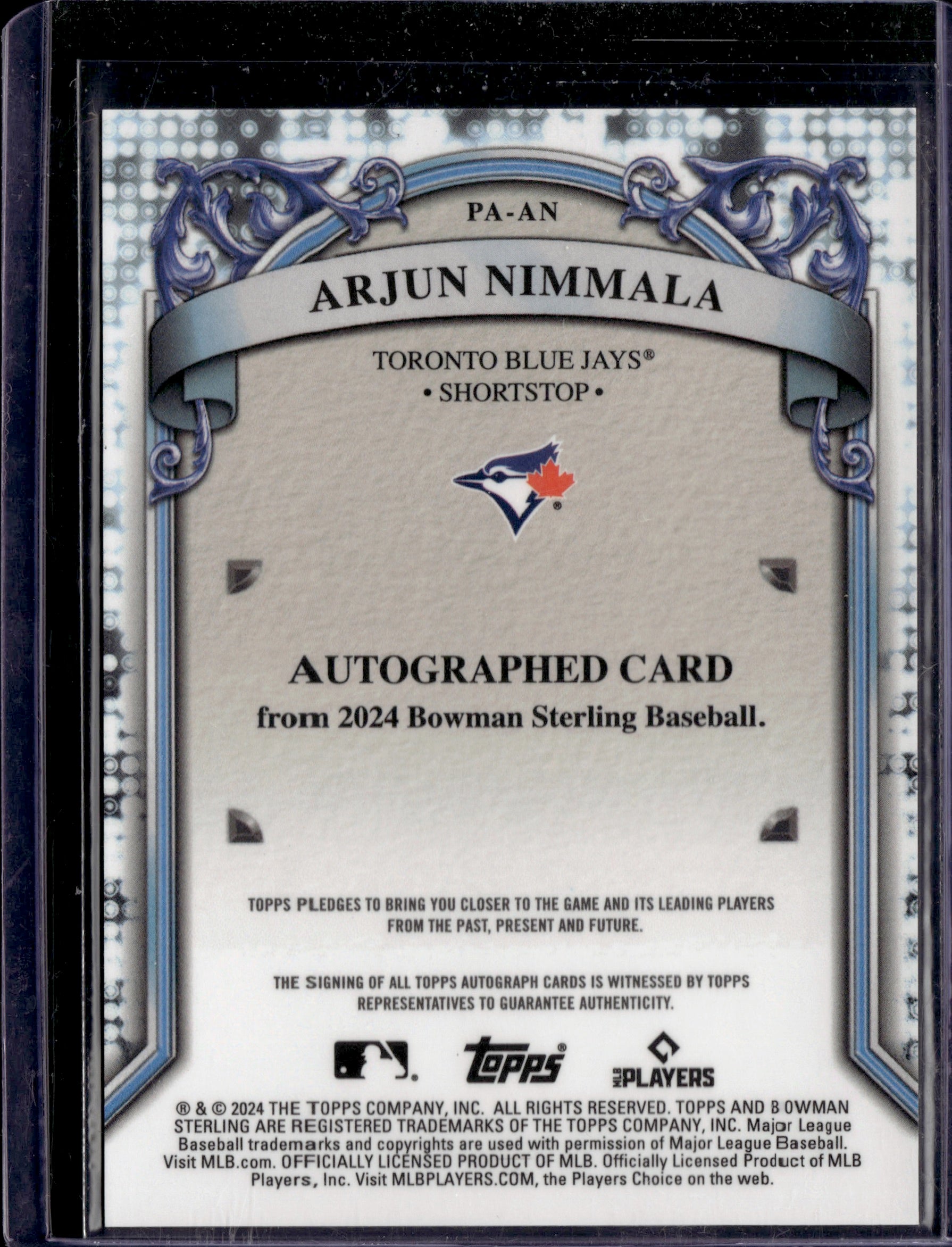 2024 Topps Bowman Sterling Arjun Nimmala Auto #PA-AN