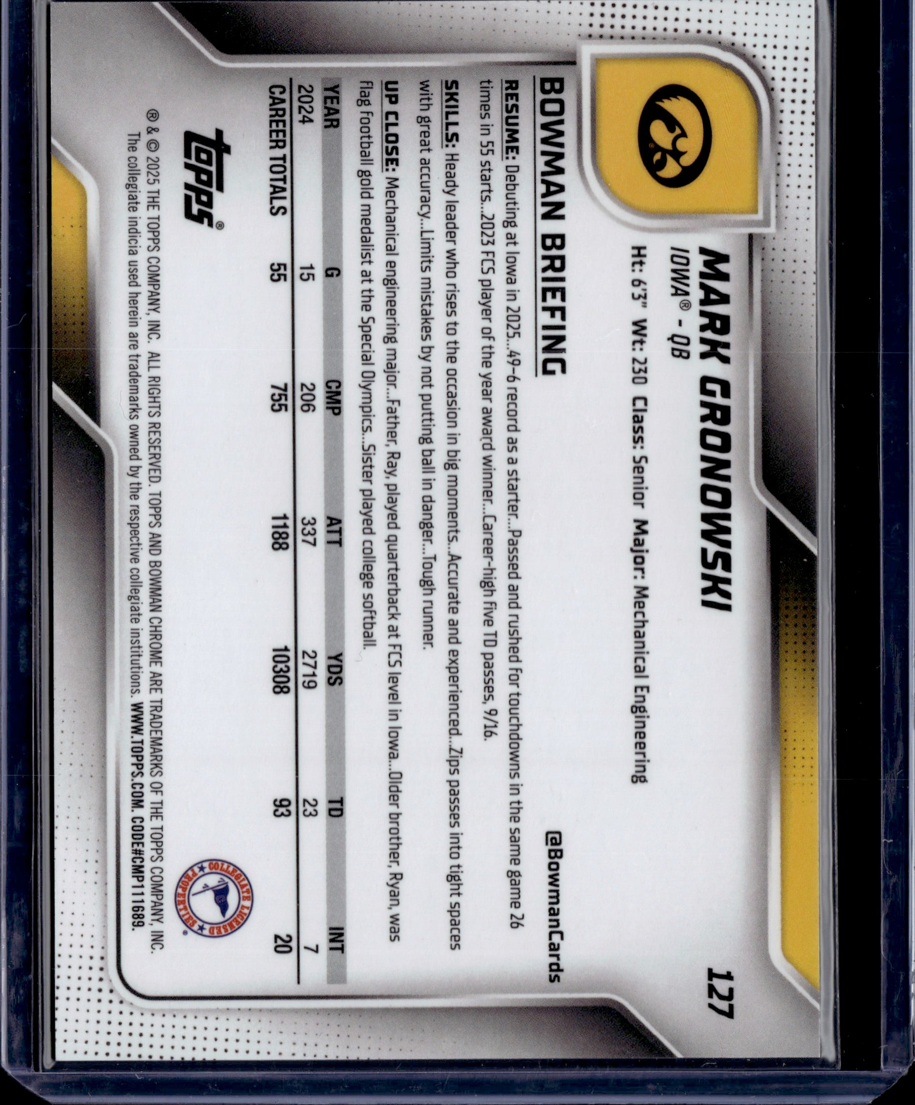 2024 Topps Bowman University Chrome Mark Gronowski Red Shimmer #127 3/5.