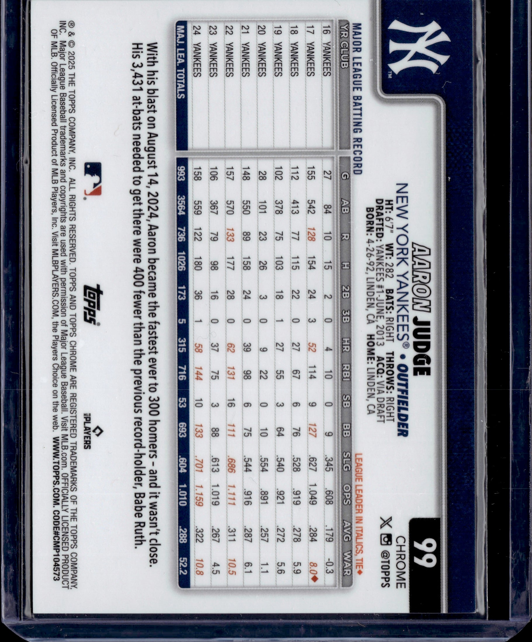 2024 Topps Chrome Aaron Judge #99 Award Winners MVP SSP /24