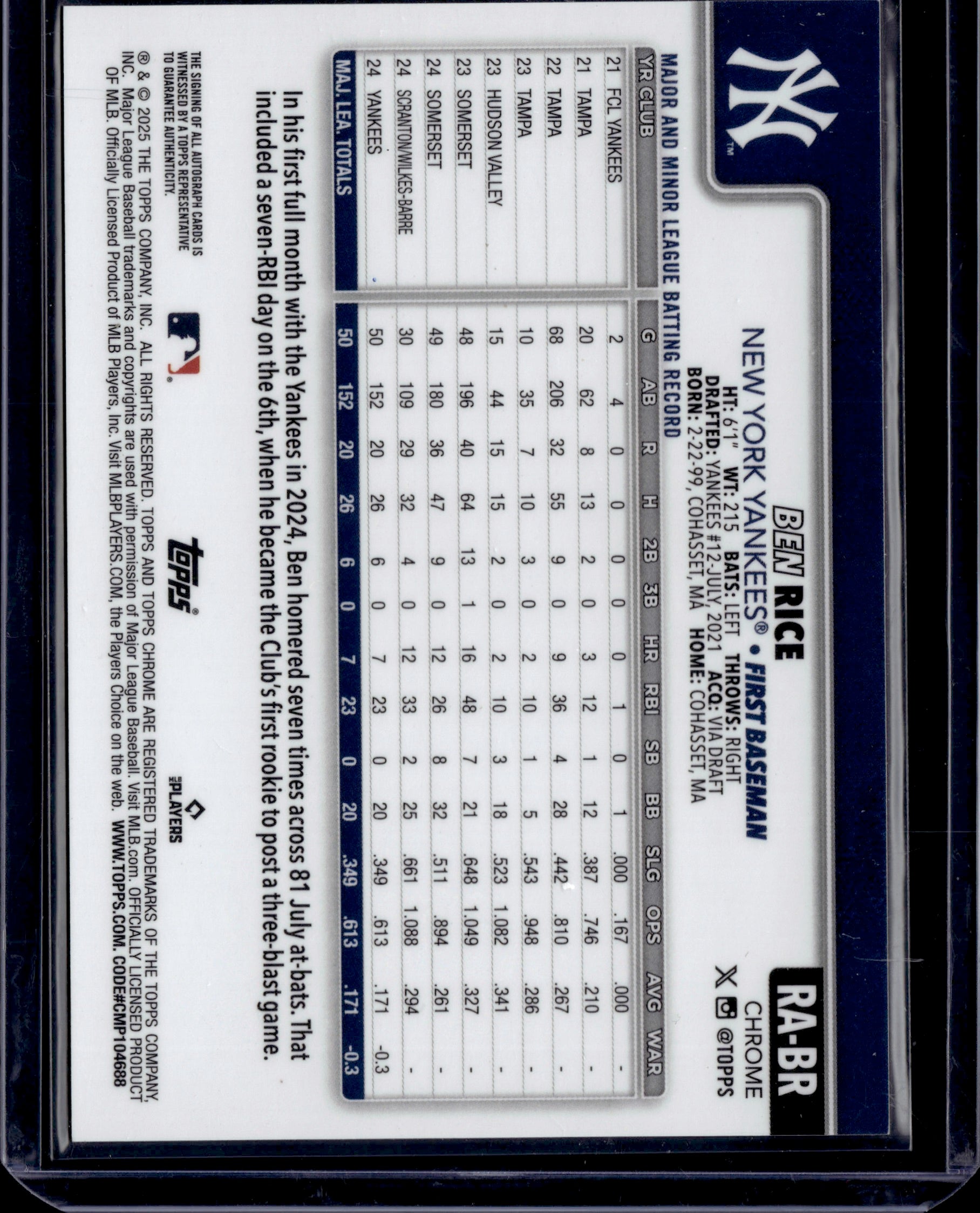 2024 Topps Chrome Ben Rice Auto /299 #RA-BR RC