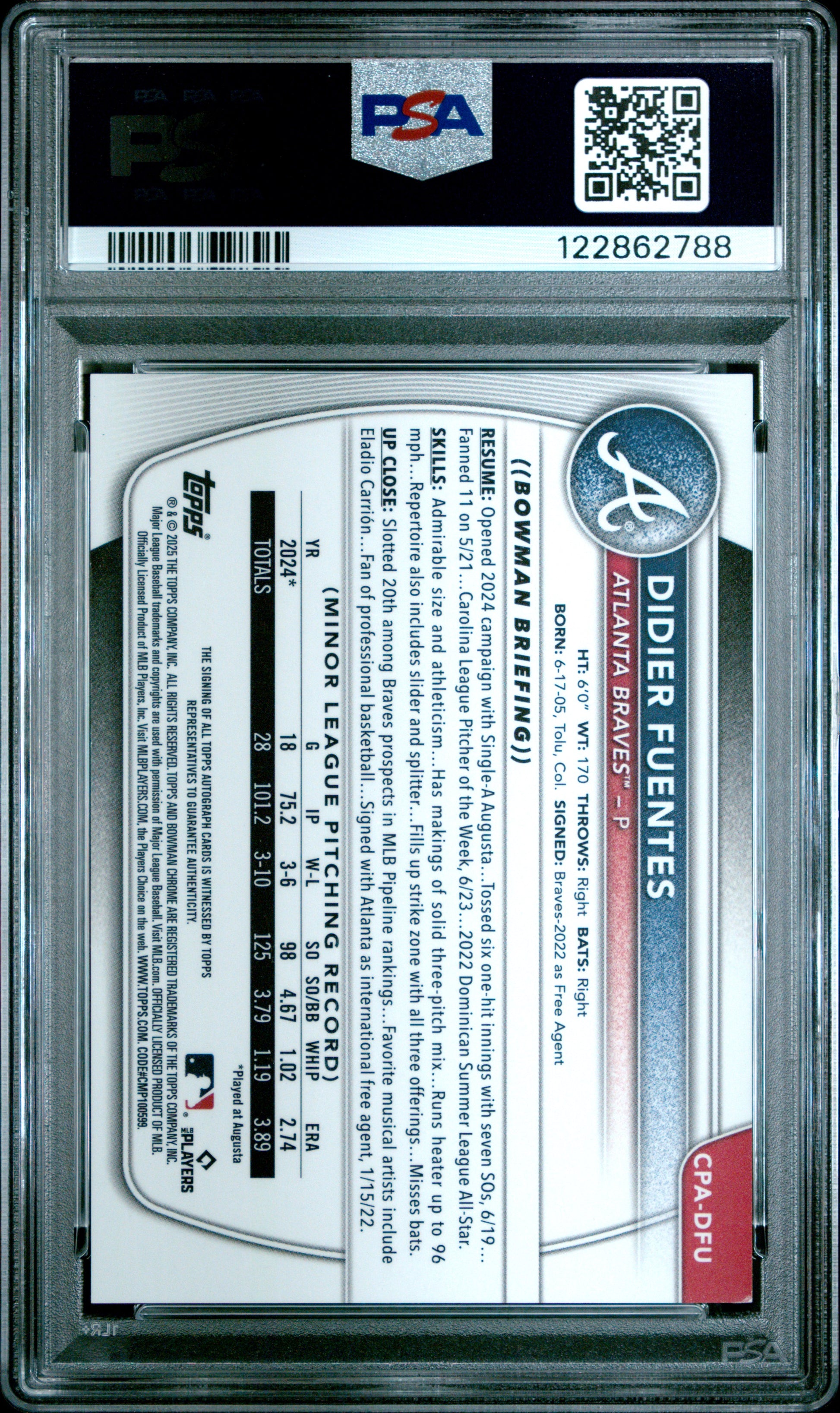 2025 Bowman Chrome Prospect Autographs Didier Fuentes Mini Dia /100 PSA 8