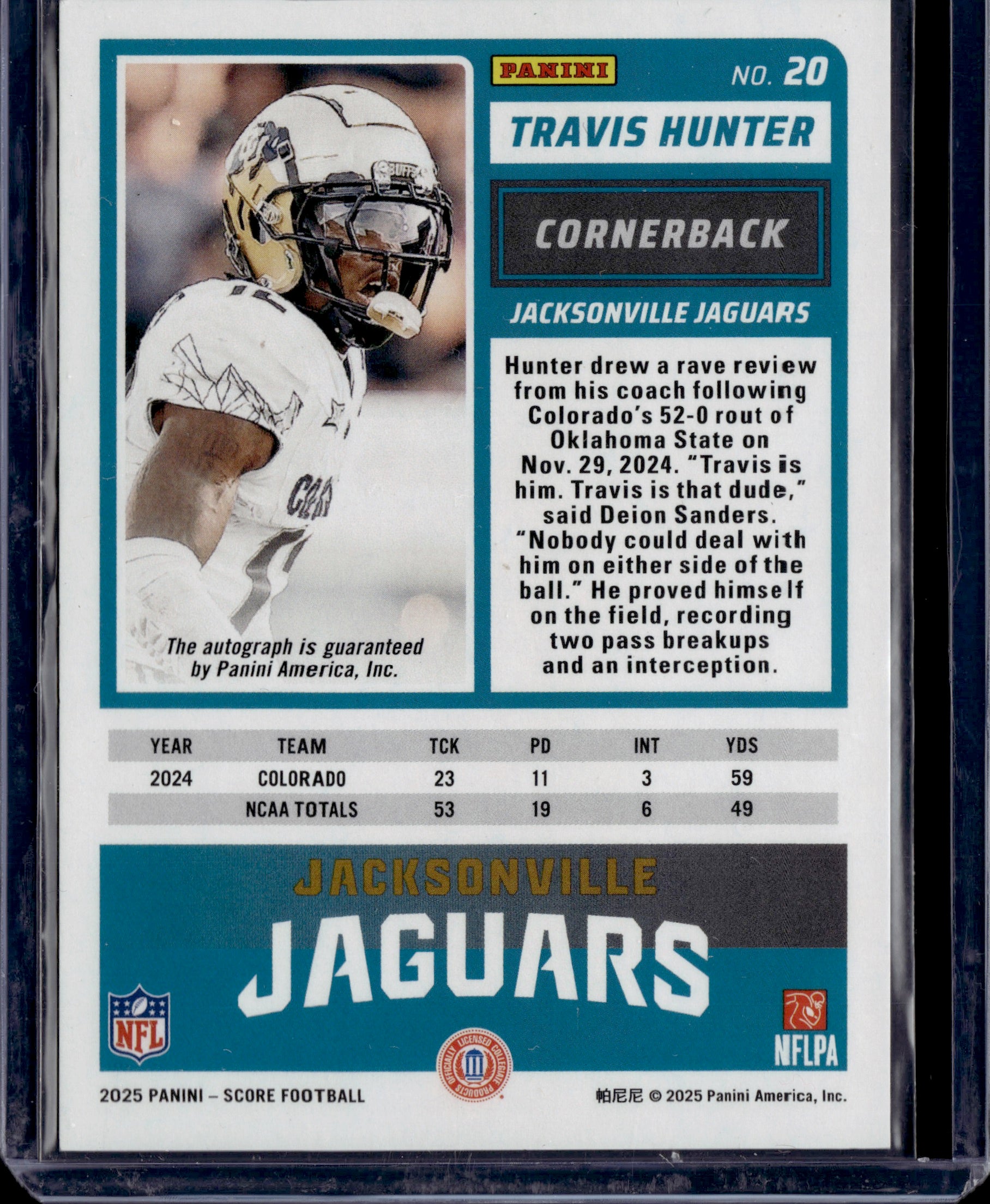 2025 Panini Score Travis Hunter #20 End Zone Auto SSP /6 RC