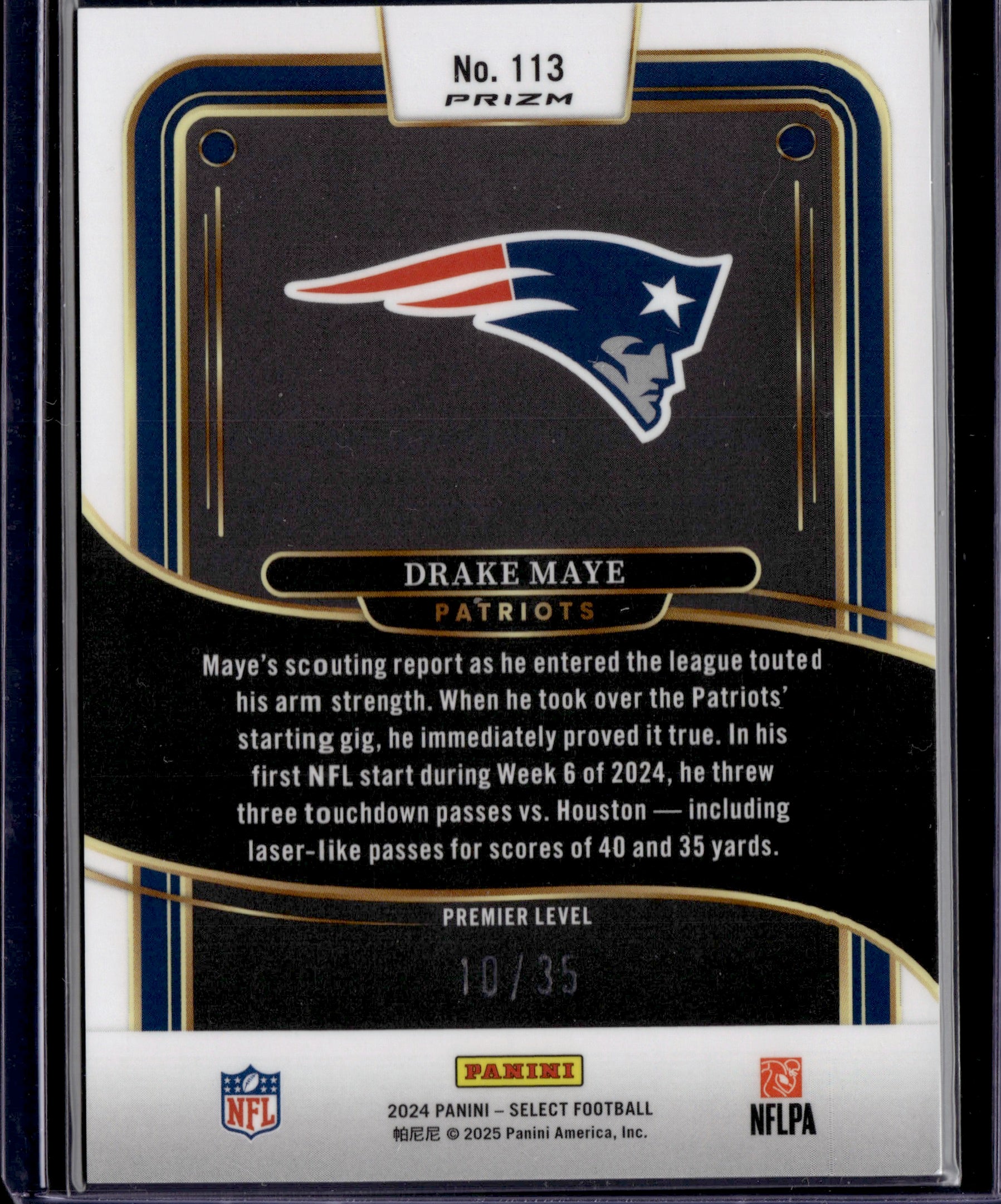 2025 Panini Select Prizm Drake Maye #113 RC Premier Level SP /35