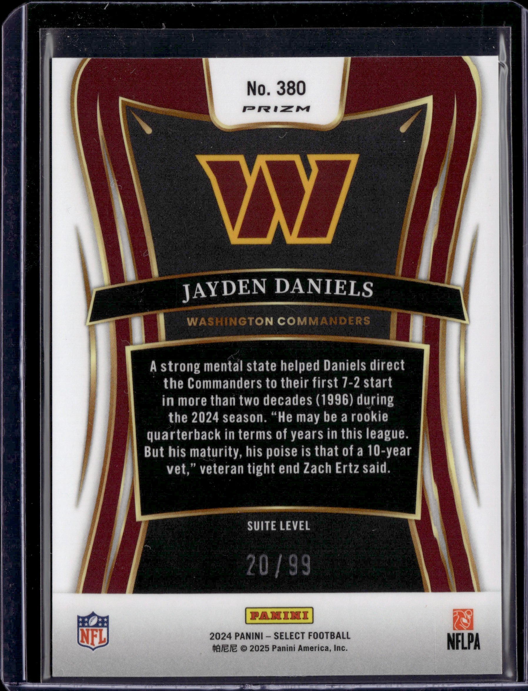 2025 Panini Select Prizm Jayden Daniels #380 Suite Level Blue RC /99