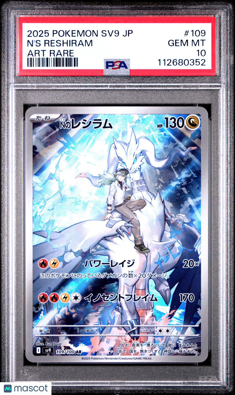 You are purchasing a 2025 Pokemon Japanese SV9-Battle Partners N'S Reshiram Japanese Art Rare PSA 10 #109. You will receive the exact item in the photographs. Thank you for looking. Listed With Mascot.