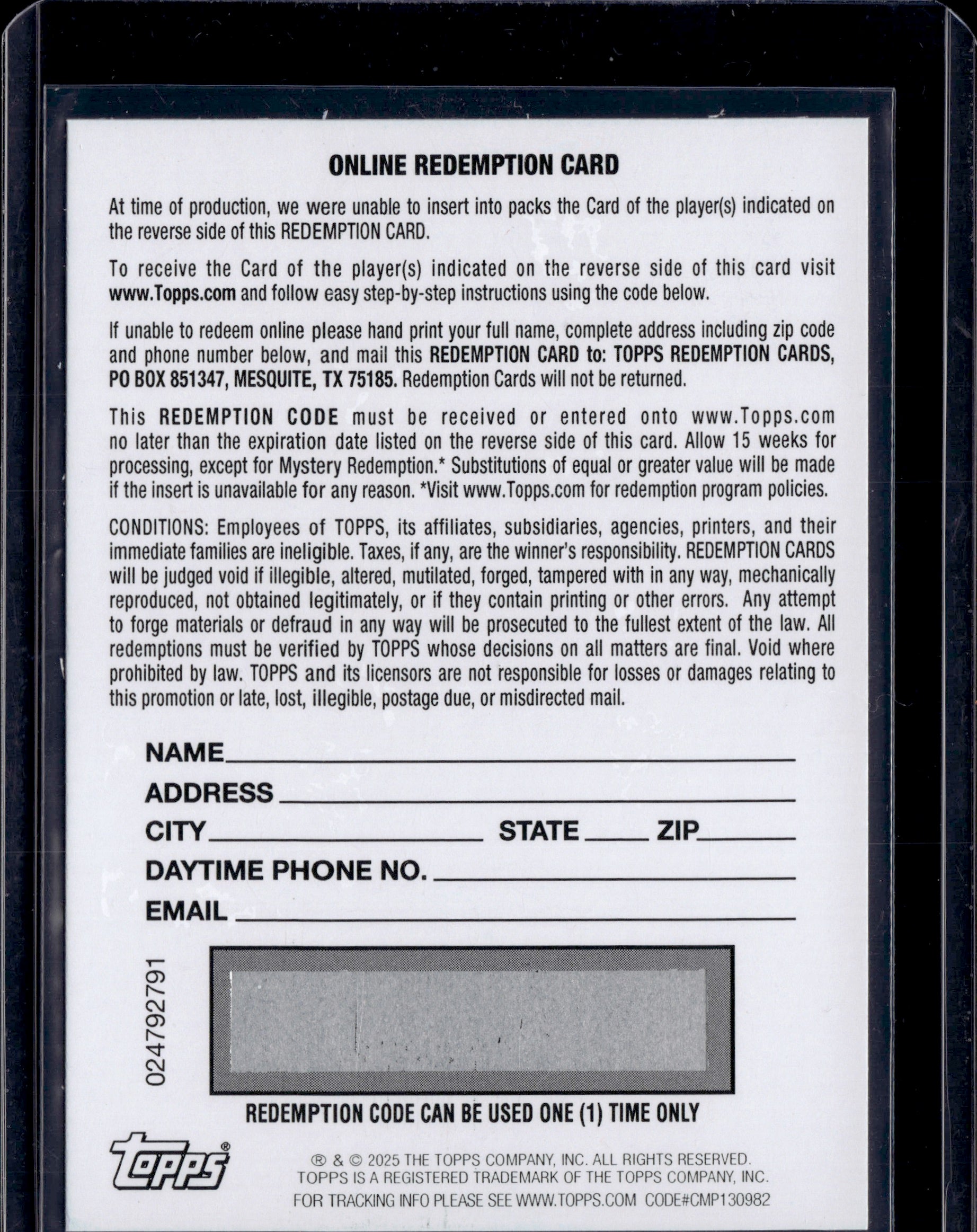 You are purchasing a 2025 Topps Finest Baseball Nick Kurtz #FA-NK Gold Parallel Finest Autograph II Gold Parallel. You will receive the exact item in the photographs. Orders are processed and shipped within 2 business days. Tracking information will be added to your order once available. We take pride in delivering exceptional service through both our fulfillment quality control and prompt communication. If you're not 100% satisfied with your order, please contact us directly as we’re confident we can resolve any issues. Positive 5 star reviews are always greatly appreciated. Thank you for choosing Graybo’s Sports Cards! Listed With Mascot.