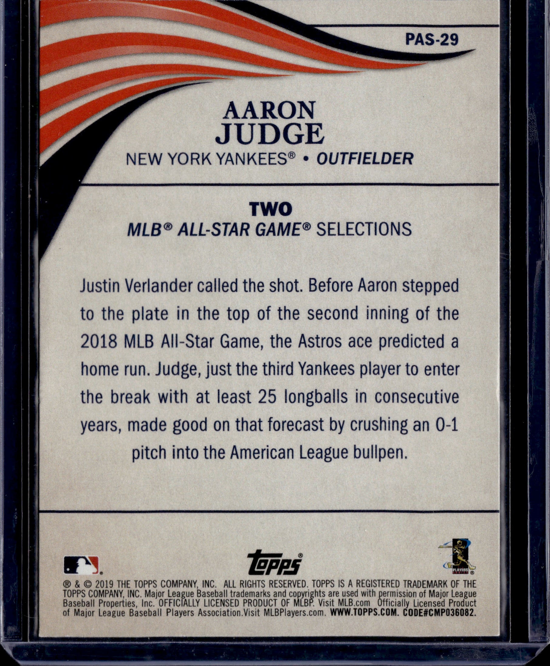 2025 Topps Originals 1/1 -2019 Topps Perennial All-Stars Aaron Judge #PAS-29
